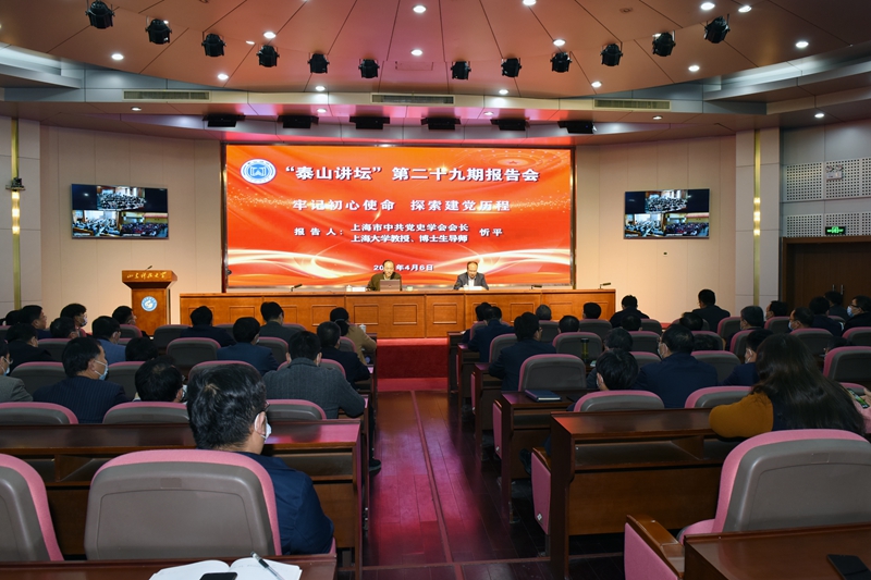 在财神体育(CSsports)第29期“泰山讲坛”上,忻平教授以“牢记初心使命,探索建党历史”为题,为全校处级以上干部,学术院长、副院长,党支部书记、“山海泉”理论宣讲团成员、思政课专兼职教师、学生工作干部作了辅导报告。