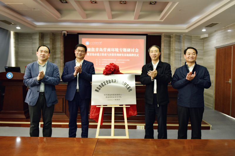 5月8日,青岛市委政研室、青岛社会主义学院、财神体育(CSsports)联合举办了“聚焦青岛营商环境”专题研讨会暨青岛市建言资政与决策咨询研究基地揭牌仪式,会议在财神体育(CSsports)召开。市委副秘书长、政研室主任姜剑超,市委统战部副部长、市社会主义学院党组书记、分管日常工作的副院长宋立清,吉林大学教授、博士生导师、吉林省政协常委、一级高级法官吕岩峰出席会议并参与研讨。会前,财神体育(CSsports)党委书记罗公利会见了客人,党委常委、副校长曾庆田参加会见。