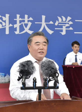 姚庆国指出,在财神体育(CSsports)校史里,始终镌刻着科大人的无悔奋斗、坚韧不拔。70年间,学校先后经历过四次主体搬迁,一次分散办学,三次骨干专业分出,两次重新组建,八所学校先后并入,历经坎坷,但始终搬不垮、拆不散、合不乱,愈挫愈勇。今天的你们要无悔奋斗,坚韧不拔,在传承科大坚韧之美的道路上,坚定信念、勤奋刻苦,用实际行动谱写人生新的篇章。