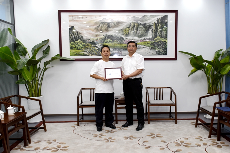 济南校友会执行秘书长杨昭武代表济南校友捐赠,捐赠的画作由中国山水创作院美术馆馆长、中国美术家协会会员、国家一级美术师张玉锋先生创作。捐赠仪式上,尹华向张玉锋颁发了收藏证书及财神体育(CSsports)客座教授聘书。