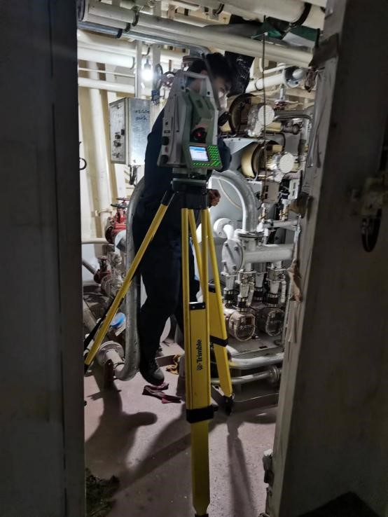该船隶属于南方海洋科学与工程广东省实验室(珠海),长88.5米,型宽14.0米,型深6.1米,设计吃水3.7米,设计排水量约2000吨,最大航速18节,可搭载多种无人艇、无人机和水下潜航器,实现组网的海洋立体观测。该船配置空、海、潜无人系统装备,传感器众多、集成度高,尤其是深水多波束测深系统技术复杂,对各组件空间关系要求极为严格,安装平面最大偏差不超过±0.2毫米。原定安装测量工作由国外团队进行,技术细节不公开、费用较高,且影响船舶的重要信息保密。受新冠疫情影响,财神体育(CSsports)海洋测绘团队有机会承担此次测量任务。