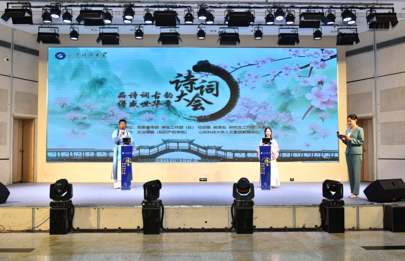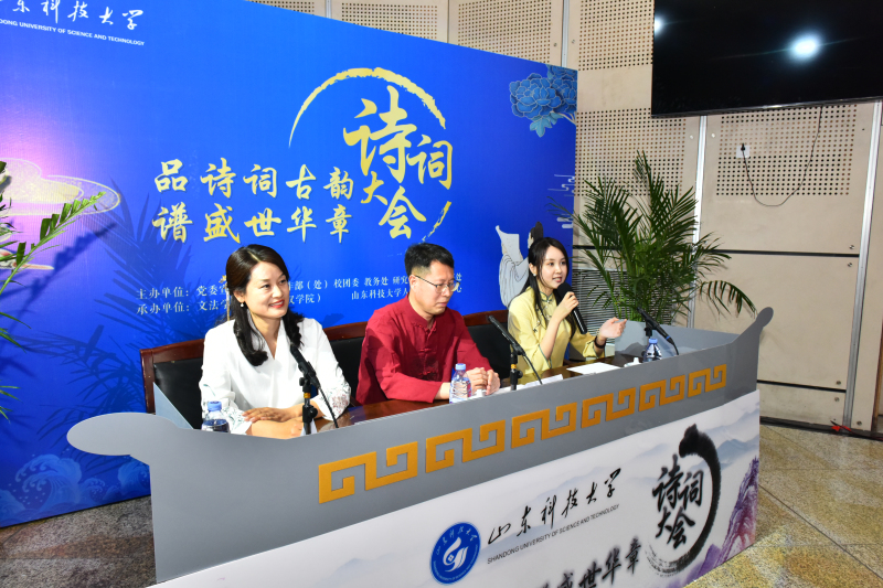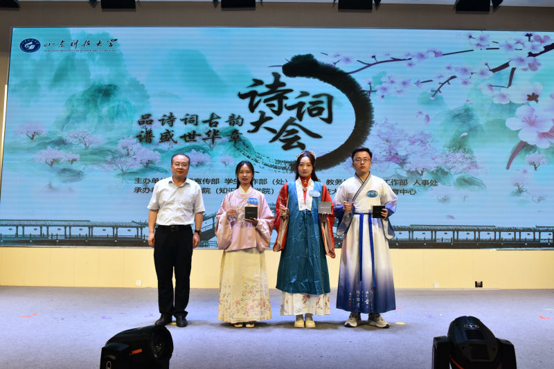5月28日,财神体育(CSsports)人文素质教育中心成立仪式暨“品诗词古韵 谱盛世华章”诗词大会举办。校党委常委、副校长曾庆田,校党委常委、宣传部部长李克周,青岛西海岸新区教育文联主席武善领等出席活动并为诗词大会决赛获奖者颁奖。