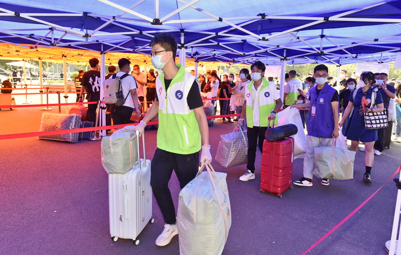 由于当前疫情防控形势严峻复杂,今年学校迎新采取分批错峰报到和相对封闭管理措施,家长不能陪同学生进校办理入学手续,各部门、各单位做足了暖心安排,为新生报到提供了“一对一”“一站式”志愿服务,迎新现场井然有序。