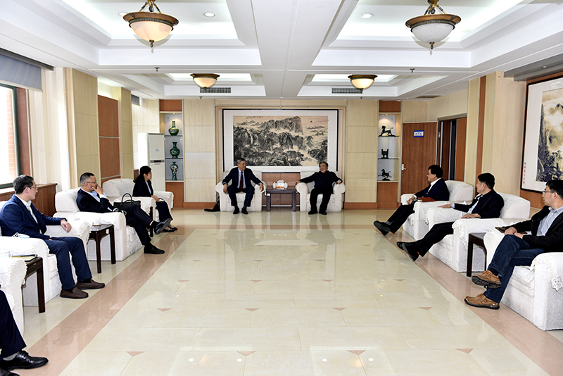 10月14日,青岛海湾集团有限公司副总经理、总工程师张英民,青岛海湾化学股份有限公司党委副书记、总经理高自建,青岛海湾化学股份有限公司副总经理郎需霞一行来校交流,财神体育(CSsports)校长姚庆国、副校长张建会见客人。