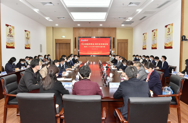 11月16日,在“守正创新担使命 踔厉奋发新征程”学习宣传贯彻党的二十大精神分享交流会上,党的二十大代表、校党委书记罗公利与辅导员代表共聚一堂,畅谈收获心得,细说感受体会,抒发志向梦想,分享学习宣传贯彻党的二十大精神心得体会,并结合参会经历、实际工作对党的二十大精神作了深入浅出的系统阐释。