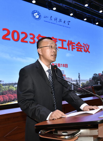 就做好学校2023年各项重点工作,罗公利强调,要落实立德树人根本任务,坚持学科建设龙头地位,实施人才强校战略,坚持创新驱动发展,持续扩大对外开放,以高质量党建引领学校高质量发展。他要求,全校上下要以习近平新时代中国特色社会主义思想为指导,认真贯彻落实党的二十大精神,抢抓山东省高等教育高质量发展重大机遇,进一步解放思想,攻坚克难,以敢于争先、争创一流的进取精神和求真务实、真抓实干的工作作风,千方百计抓好落实,全面完成学校第三次党代会确立的主要目标任务,为建设工科主导、特色鲜明的高水平应用研究型大学作出新的更大贡献。