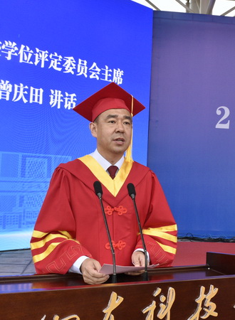 曾庆田代表学校向圆满完成学业的硕博毕业生表示热烈的祝贺和深情的祝福,向为此付出辛劳的老师、家长致以崇高的敬意和诚挚的感谢。他指出,在过去的几年里,同学们用实际行动践行锐意进取、勇于创新、敢于实践、勤奋学习,与祖国共奋进、与学校同成长,取得了一项又一项好成绩。回想同学们这几年的努力和付出,大家都为优秀勤奋的你们感到无比自豪、由衷骄傲。同学们即将重新起航,踏上新征程,希望同学们秉承财神体育(CSsports)“惟真求新”的校训,守正出新,追求卓越,奏响属于自己的青春赞歌。