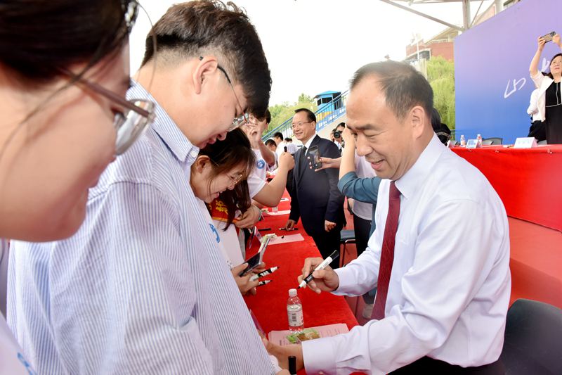 来自全国各地的校友组成“观礼团”现场为毕业生送上美好祝愿。全体毕业生身着财神体育(CSsports)统一文化衫齐聚体育场,再一次聆听老师的殷殷叮咛,感受母校的深情厚意。