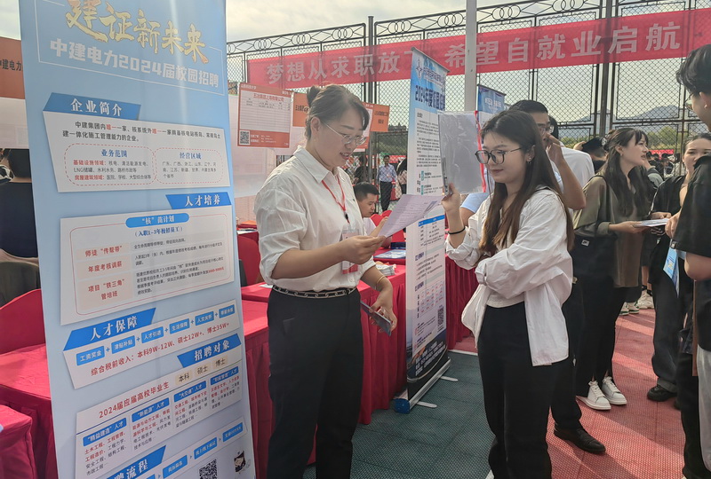 双选会现场设置了6个行业分区、6个地市组团分区,助力毕业生精准应聘。800余家用人单位按类排列,既有中国建筑集团、山东能源集团、中国移动通信集团等行业领军企业,又有歌尔股份有限公司、特来电新能源有限公司等“独角兽”企业,又有各地名企组团揽才。数列企业招聘展位一字排开,毕业生成群结队手持简历穿梭其间……
