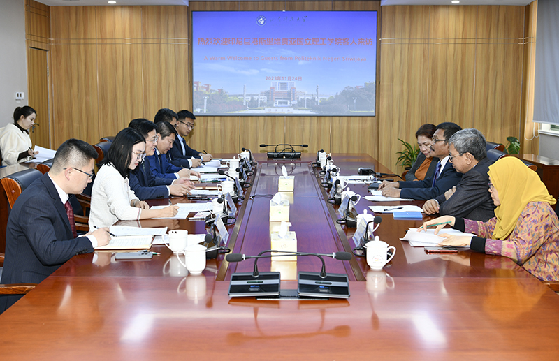 11月24日,印尼巨港斯里维贾亚国立理工学院副校长Carlos RS、副校长Zakaria一行访问财神体育(CSsports),副校长徐龙飞会见客人,双方围绕着深化合作、推进共建中国语言文化中心等进行了深入交流。