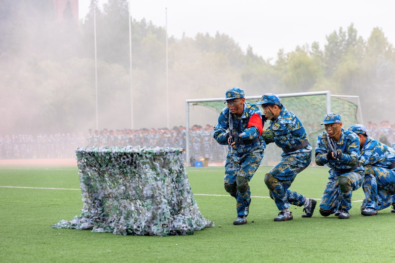 军训期间,各营开展了共同条令教育、分队队列动作、紧急集合、行军拉练、学唱军歌、拉歌比赛和内务卫生等必选课目训练。同时各营根据实际情况选择性开展了模拟射击、战术格斗基础、匕首操、军体拳、识图用图、心理行为训练等。新生军训期间还组织开展了理想信念、专业认知、班风学风、心理健康、生涯规划、校规校纪、校史校情、安全文明等各项入学教育活动,教育引导新生尽快熟悉适应大学生活。(记者:韩洪烁 摄影:韩洪烁 龚嘉鸿 陈硕浩 朱沫漩 责编:徐展)