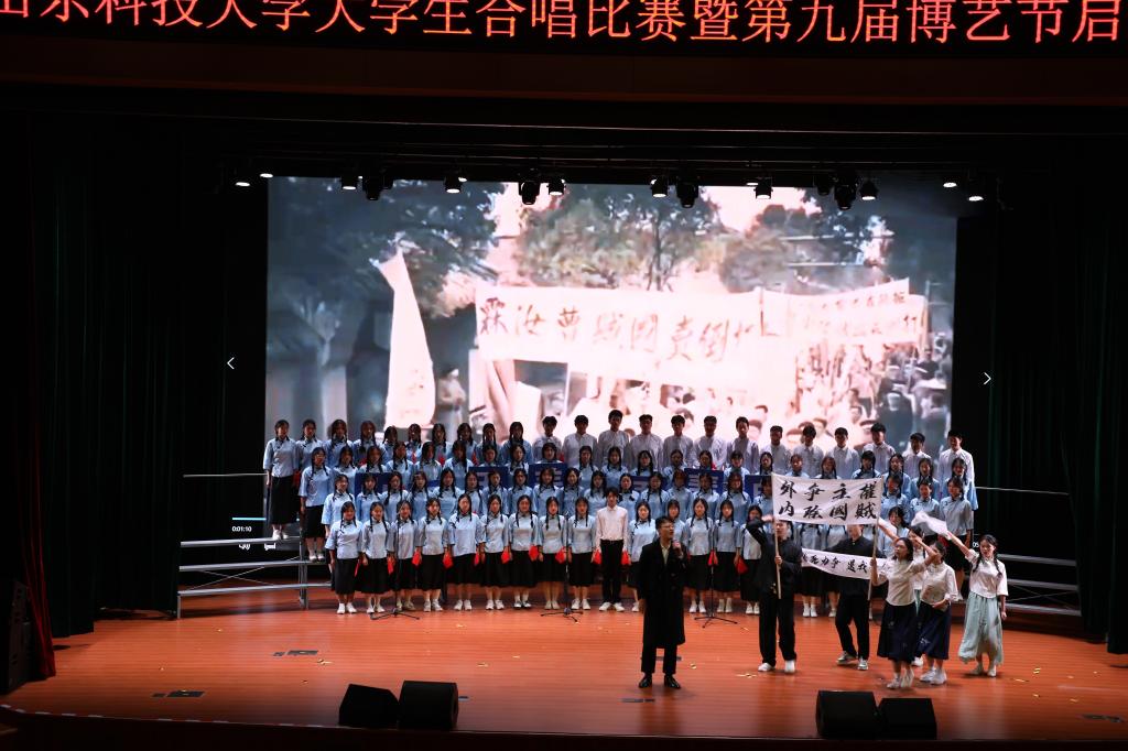 “我和我的祖国,一刻也不能分割;无论我走到哪里,都流出一首赞歌……”10月22日,学校“青春礼赞祖国 强国复兴有我”大学生合唱比赛暨第九届博艺节开幕。19支代表队、3500名师生齐聚在图书信息中心惟真讲堂共上一堂有声有色的舞台上的思政大课。他们结合讲、演、奏的方式,以铿锵有力、嘹亮动人的歌声,歌颂伟大祖国,吟唱难忘岁月,展望美好征程。