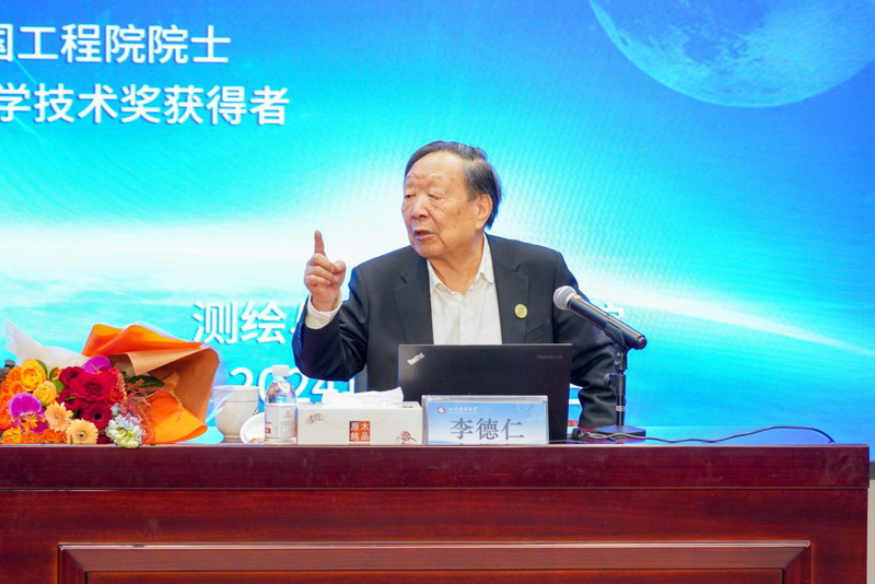 报告会上,李德仁院士以习近平总书记关于新质生产力的重要论述开篇,论述了新质生产力与时空智能的关系,以无所不在的PNT与PNTRC、无人机与移动测量机器人、传感网与无人舰艇、月球与火星智能探测等为例,运用大量详实的科研成果对空天、空地、水面水下、深空、社会经济时空智能进行了详细介绍。他对时空智能学的兴起、定义进行阐释,表示时空智能学是应当今万物互联和人工智能时代需要应运而生,提出要从测绘遥感地理信息学到时空智能去拥抱新质生产力,努力推进和实现天空地海无所不在的时空智能,抓紧推进人工智能引导下的通导遥一体化的时空智能大众化服务,创造多个万亿级新质生产力产业,勇敢推动测绘学走向时空智能学。
