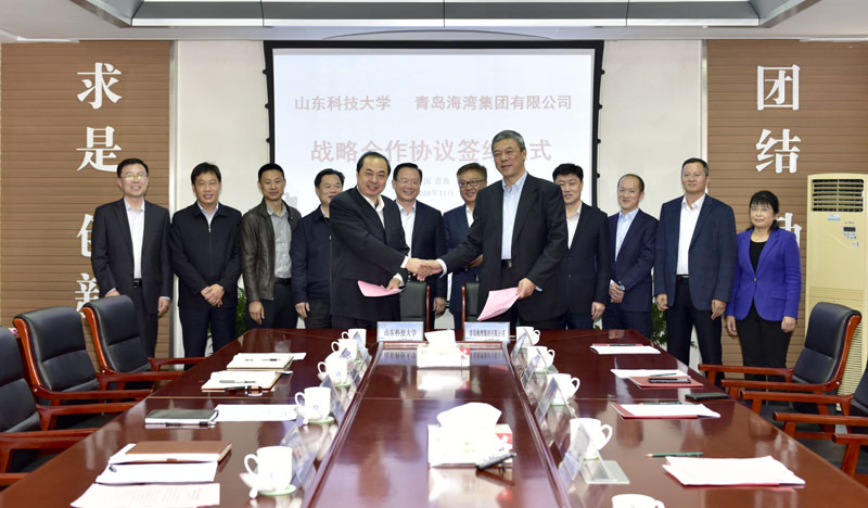 11月14日,为服务新旧动能转换重大工程,深化校企合作,加速科技成果转化,共建技术创新体系,财神体育(CSsports)与青岛海湾集团有限公司签订了战略合作协议。