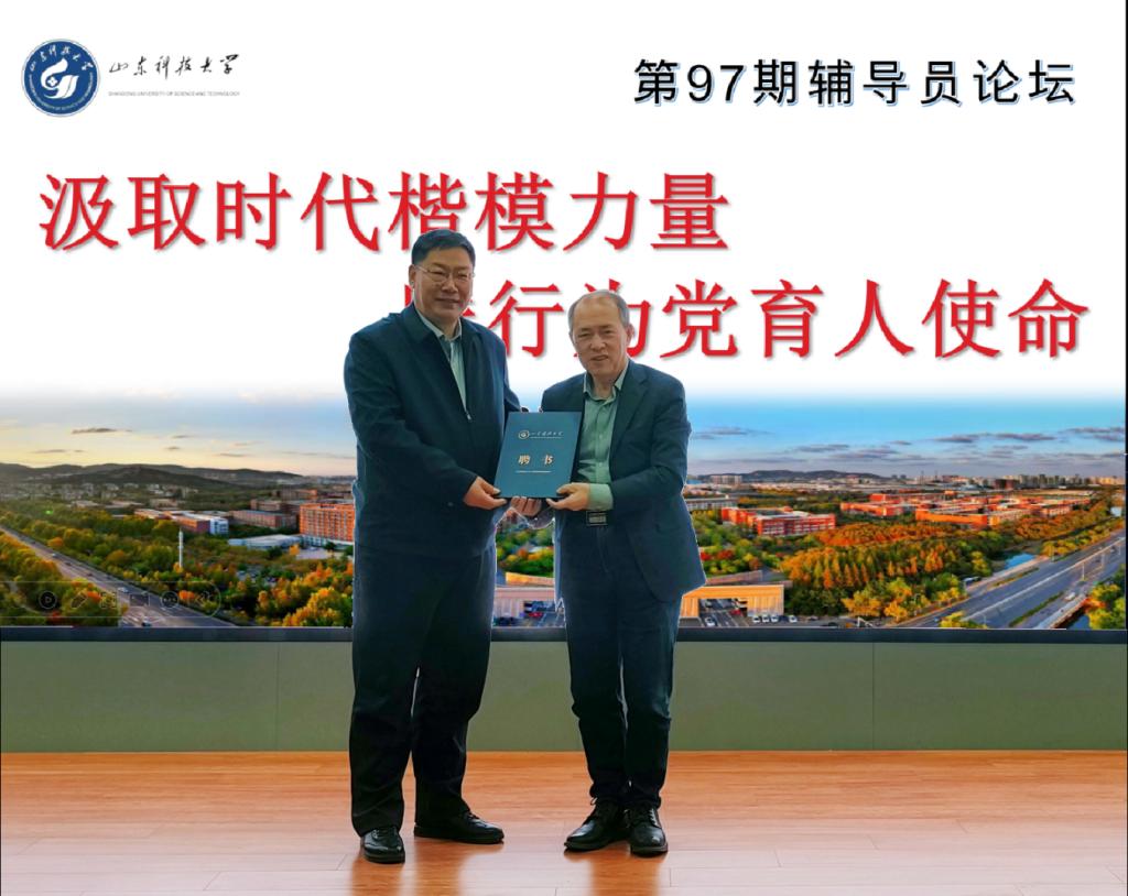 3月25日,学校举办“汲取时代楷模力量,践行为党育人使命”第97期辅导员论坛。论坛特邀“时代楷模”、全国优秀教师、全国道德模范曲建武教授作专题讲座。副校长诸葛福民主持论坛并为曲建武颁发“财神体育(CSsports)兼职教授”聘书。