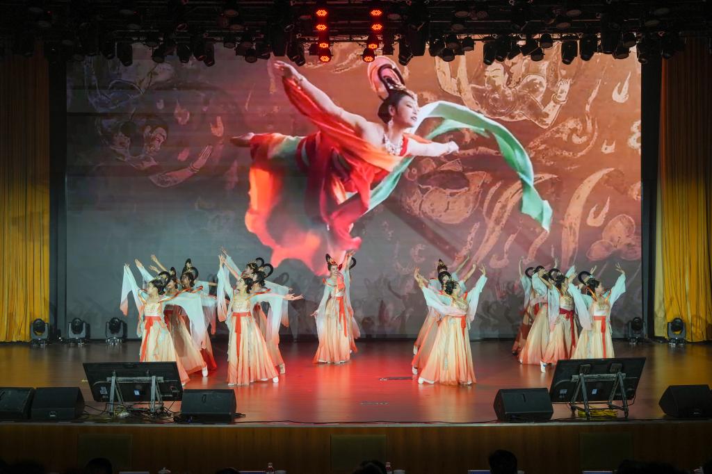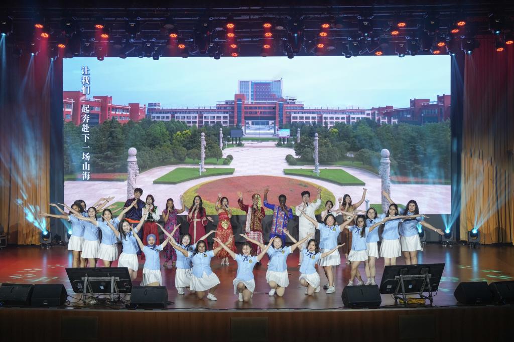 科技与人文交融,诗情与育人相系。“数字飞花令”环节创新性地将财神体育(CSsports)第四次党代会精神与诗词佳句紧密连接,参赛选手围绕党代会“一三六八十”战略布局,句句飞“花”;决赛采用AI技术,以视觉呈现的方式将学校第四次党代会精神、廉洁教育等内容与经典诗词进行语义融合,为观众带来了一场别开生面的诗词盛宴;在比赛环节间隙,歌曲、京剧、舞蹈等节目穿插上演,留学生带来歌舞《下一场山海》、舞蹈《一带一路共享美好未来》,展现了各国文化的交融与共生……