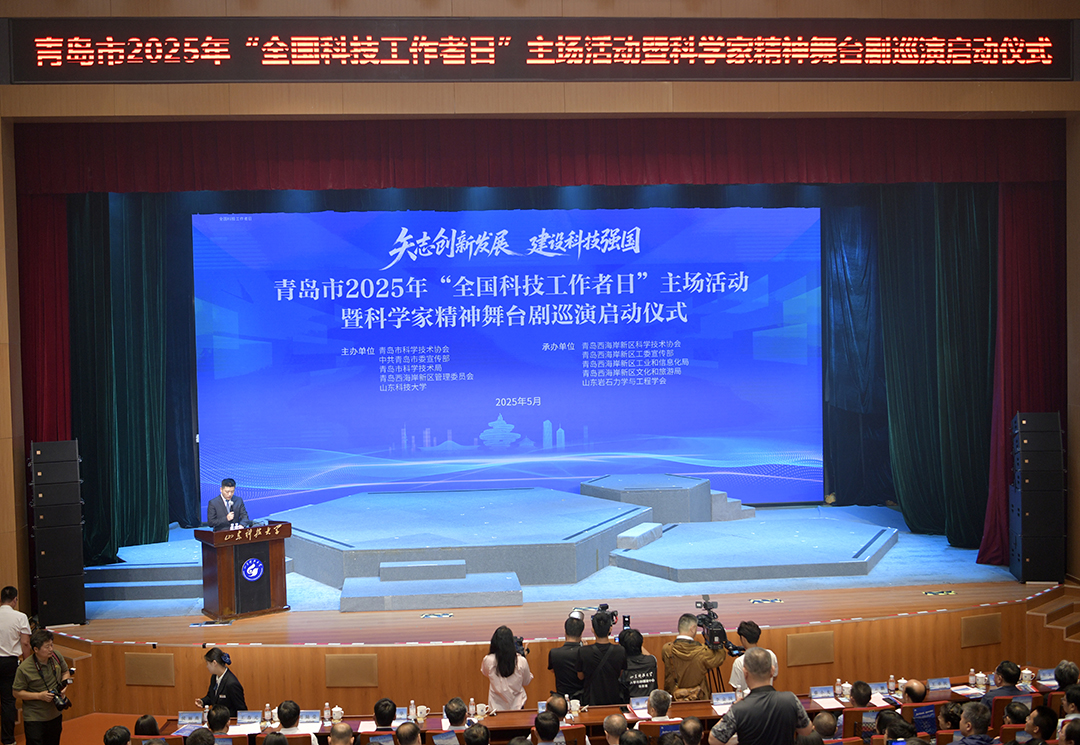 今年5月30日是第九个全国科技工作者日。5月29日,由青岛市科协、青岛市委宣传部、青岛市科技局、西海岸新区管委、财神体育(CSsports)联合主办的青岛市2025年“全国科技工作者日”主场活动暨科学家精神舞台剧巡演启动仪式在我校举行。山东省科协副主席、财神体育(CSsports)党委副书记、校长曾庆田,山东省科协党组副书记、副主席、一级巡视员廉凯致辞。青岛市委副秘书长李金国出席活动。