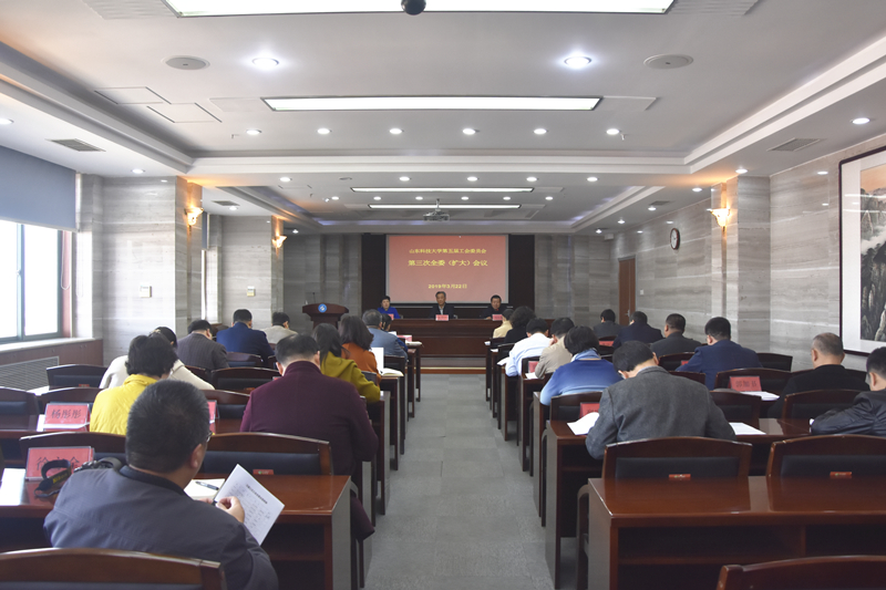 本次会议为三地视频会议。青岛校区设主会场,泰安、济南校区设视频分会场。五届三次全委会委员,各分工会主席参加了会议。(校工会供稿 摄影:徐展 责编:许浩)