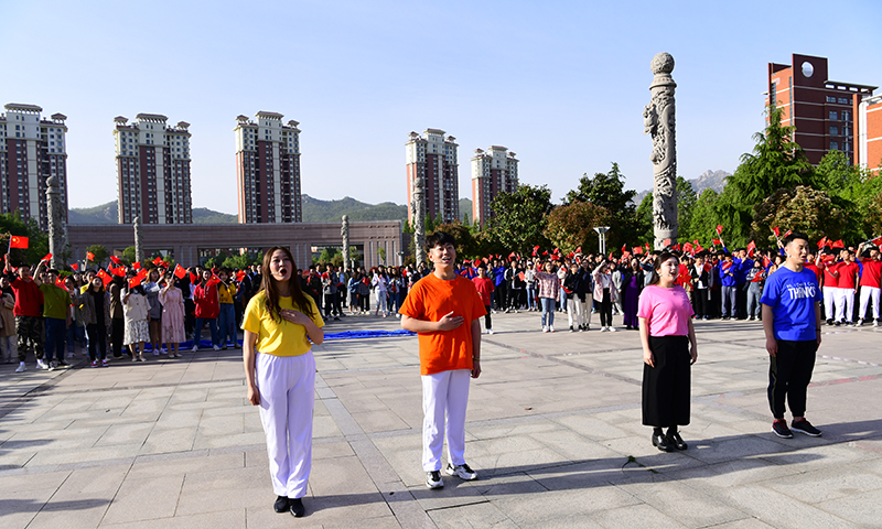 校党委常委、副校长高建广,校党委常委、宣传部部长李克周,有关部门、单位相关负责人参加了启动仪式。640余名学生代表手持国旗,神情肃穆,齐聚泰山广场,共同见证五星红旗冉冉升起的时刻。