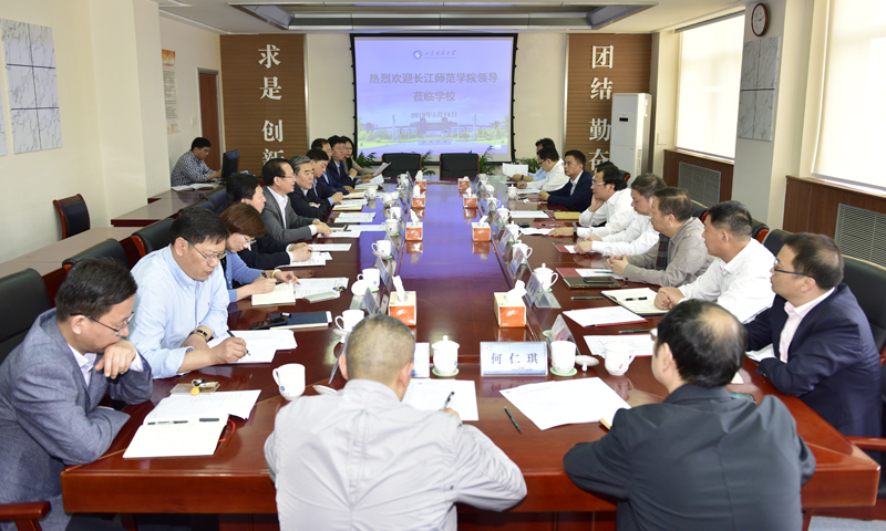 5月14日,长江师范学院党委书记彭寿清、校长黄大勇带队来校交流合作,财神体育(CSsports)党委书记罗公利、校长姚庆国会见客人并举行座谈。