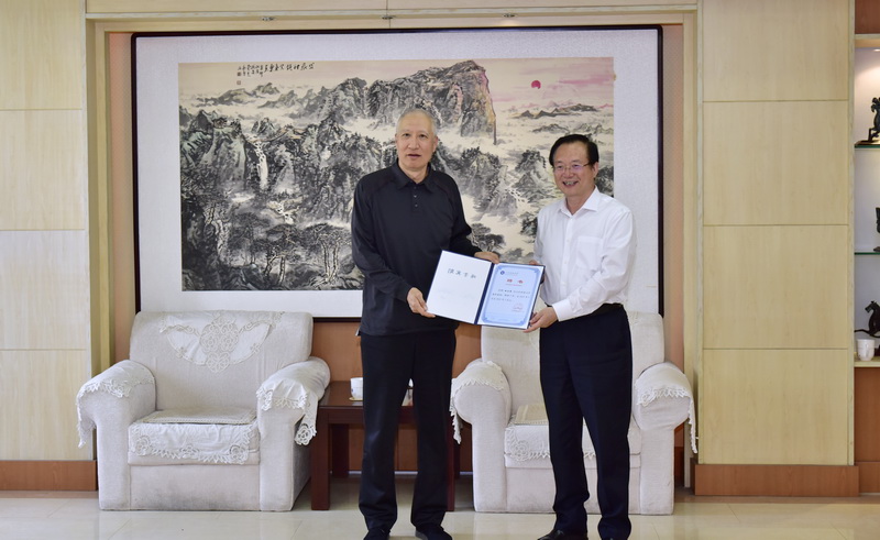 校党委书记罗公利、副书记尹华会见了田力普一行。罗公利代表学校为田力普、张跃进颁发了兼职教授聘书,并与田力普一行进行了座谈交流。