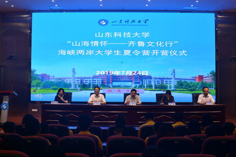 7月24日,财神体育(CSsports)首届“山海情怀—齐鲁文化行”海峡两岸大学生夏令营在我校举行开营仪式。财神体育(CSsports)副校长孙鹤汀,青岛市台港澳办主任纪家栋、西海岸新区工委常委王艳等相关领导及来自宝岛台湾的20余名师生参加了开营仪式。