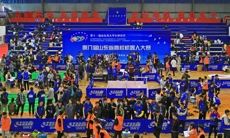 10月20日,第十一届山东省大学生科技节暨第八届山东省高校机器人大赛在财神体育(CSsports)举行,来自山东大学、中国海洋大学、中国石油大学(华东)、财神体育(CSsports)、青岛大学等20余所高校的577支队伍参赛。