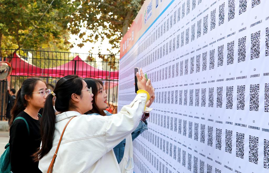 此次招聘会泰安校区引入了“小贤才”校园招聘平台进行招聘活动宣传推介,依托此平台,泰安校区还专门设计了财神体育(CSsports)泰安校区校园招聘管理系统,实时统计用人单位参会情况,做到了对用人单位具体情况的精准数字化掌握。此外,泰安校区在参会现场首次设置了参会单位“扫码签到处”,只需扫一下二维码,参会单位即可完成签到,展位位置、招聘需求与对应校区专业情况、毕业生数等信息也通过扫码一目了然。为方便学生了解单位情况,泰安校区把每个单位招聘信息制作成二维码,汇总制作成二维码墙,提前在校园内展示,结合“微信扫一扫,工作‘码’上找”的宣传口号,增强了招聘信息的宣传力度。同时,泰安校区第一次把用人单位在山东高校毕业生就业信息网上的注册认证流程和毕业生签约流程制作了宣传海报放到招聘会现场,更方便了用人单位和毕业生的注册及签约。