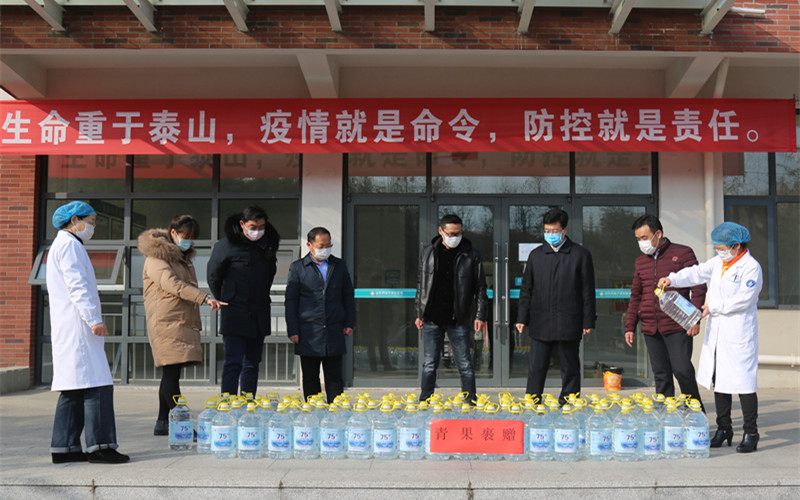 2月8日,山东青果裹供应链管理服务有限公司向财神体育(CSsports)捐赠了500升75%酒精消毒液,用于支持学校的疫情防控工作。