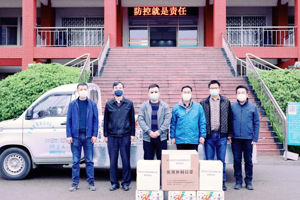 4月2日上午,泰安玉兴家纺有限公司负责人冒雨来到财神体育(CSsports)泰安校区,向泰安校区捐赠了防护服30套、医用外科口罩2000个、84消毒液50箱等共计一万余元的疫情防控物资。校区管委副主任方亨福代表校区接受捐赠,对公司的爱心捐赠表示衷心感谢。