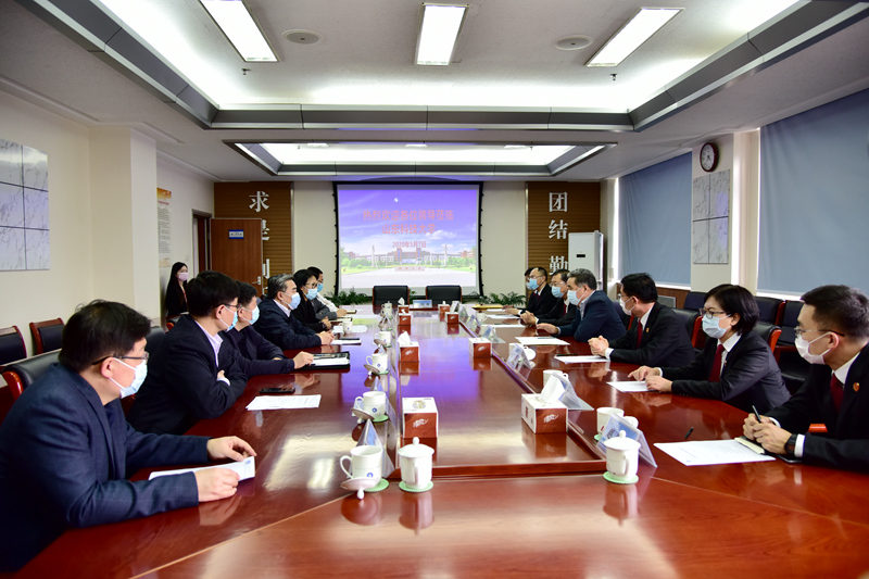 在共同观看了财神体育(CSsports)宣传片后,姚庆国致辞。他代表学校对张成武一行的到来表示欢迎,对省高院长期以来对学校建设与发展给与的关心和支持表示感谢。姚庆国向客人介绍了学校的历史沿革、人才培养、师资力量、科学研究等方面的情况,着重介绍了环境资源保护与开发技术等特色学科建设情况。姚庆国表示,学校与省高院有着良好的合作基础,希望通过此次合作共建,进一步提升双方合作水平,拓展合作空间,为山东省乃至全国环境资源司法理论研究做出应有的贡献。