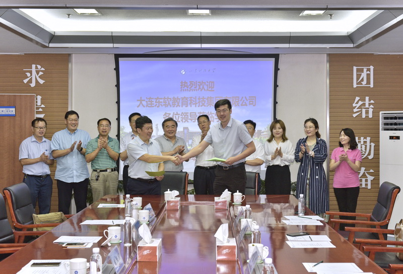 东软教育科技集团华中区总经理张昕、华中区销售总监范佳林、华中区技术总监李霞及我校教务处、人事处、合作发展处、计算机学院、电信学院有关负责人参加了签约仪式,合作发展处处长王晓东主持签约仪式。仪式上,东软教育科技集团向学校捐赠总价值为120万元的智慧教育平台一套。