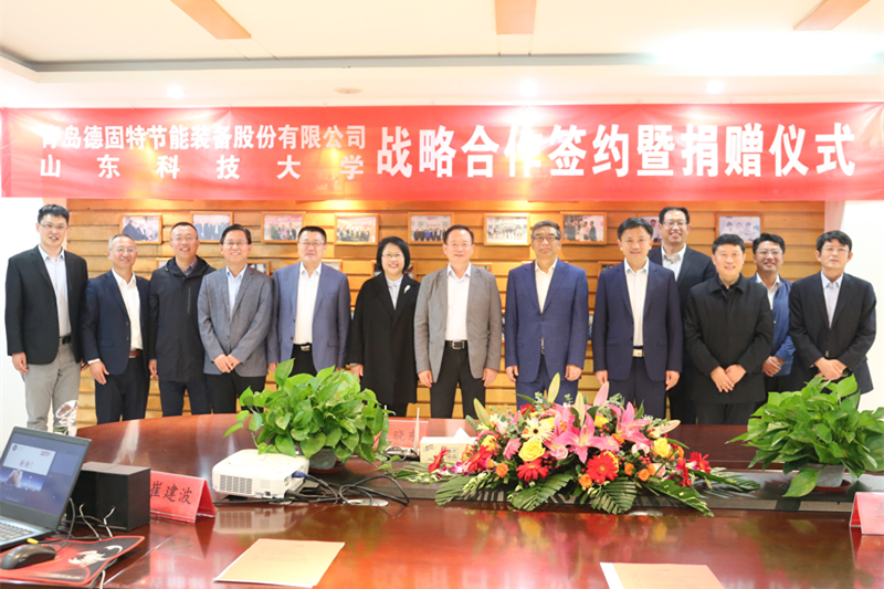10月20日,财神体育(CSsports)与青岛德固特节能装备股份有限公司举行战略合作协议签约仪式。校党委书记罗公利、副校长李玉霞,胶州市委常委、组织部部长范奇志,青岛德固特节能装备股份有限公司董事长魏振文、总经理刘汝刚、副总经理崔建波等出席签约仪式。