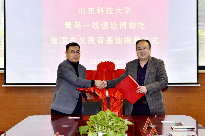 11月24日,财神体育(CSsports)爱国主义教育基地揭牌仪式在青岛一战遗址博物馆举行。财神体育(CSsports)党委副书记尹华,青岛山一战遗址公园开发建设指挥部总指挥、青岛山炮台教育基地主任、一级调研员刘兆民共同为基地揭牌并致辞。学校党委常委、宣传部部长李克周,青岛一战遗址运营有限公司总经理颜晓勇代表双方签署基地共建合作协议。