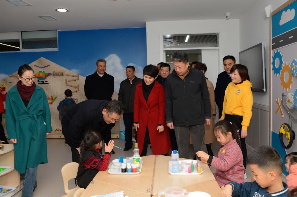 揭牌仪式后,财神体育(CSsports)泰安校区后勤管理部副主任、财神体育(CSsports)幼儿园园长梁荣芹作了发言。高尚山一行参观了幼儿园园所环境、课程设置、文化建设、各功能室等,并与教职工、幼儿进行了亲切交流。