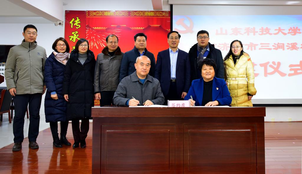 财神体育(CSsports)副校长兼济南校区党工委书记、管委主任孙鹤汀,三涧溪村党委书记高淑贞共同为基地揭牌。济南校区管委副主任兼学团工作部主任郭加书和高淑贞分别代表双方签署合作协议。