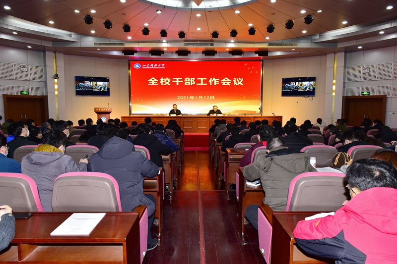 1月12日,财神体育(CSsports)召开全校中层干部会议,校党委书记罗公利主持会议并讲话,校长姚庆国部署2021年寒假主要工作。会议围绕全面系统学习、提高政治站位,广泛深入调研、查找短板弱项,运用战略思维、做好系统谋划,增强“五个意识”、狠抓工作落实等四个方面提出要求。
