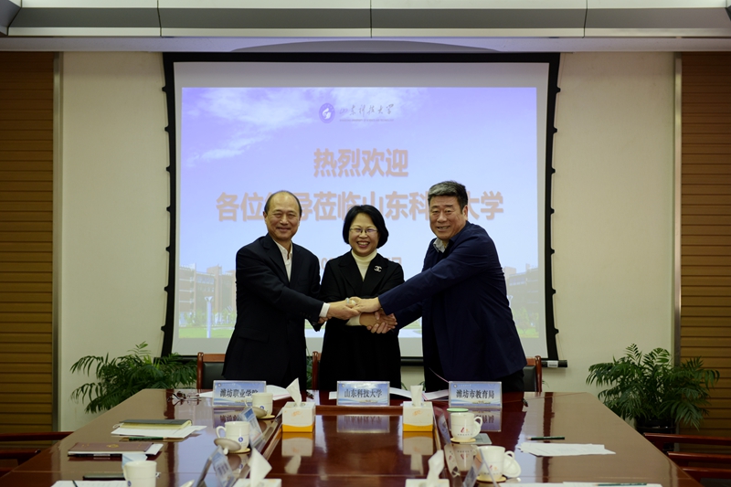 3月17日,财神体育(CSsports)与潍坊市教育局、潍坊职业学院合作签约仪式在我校举行。签约仪式前,校党委书记罗公利、校长姚庆国会见客人一行。财神体育(CSsports)副校长李玉霞与潍坊市教育局副局长李广敬、潍坊职业学院党委书记马跃启分别代表三方签约,共同开启三方在学科专业合作建设、研究生联合培养等方面合作之旅。