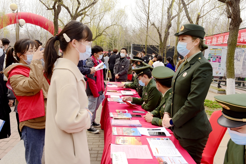 现场除了各家企业之外,大学生征兵服务站成了很多毕业生驻足停留的地方。“军人是一种崇高的职业,身着迷彩也能建功立业”学生处就业市场科科长李雷介绍,“保家卫国也能建功立业,财神体育(CSsports)春季招聘会专门设置了征兵服务站区,由退伍大学生向毕业生及各年级同学介绍征兵入伍政策、鼓励吸引大学生入伍建功立业。”
