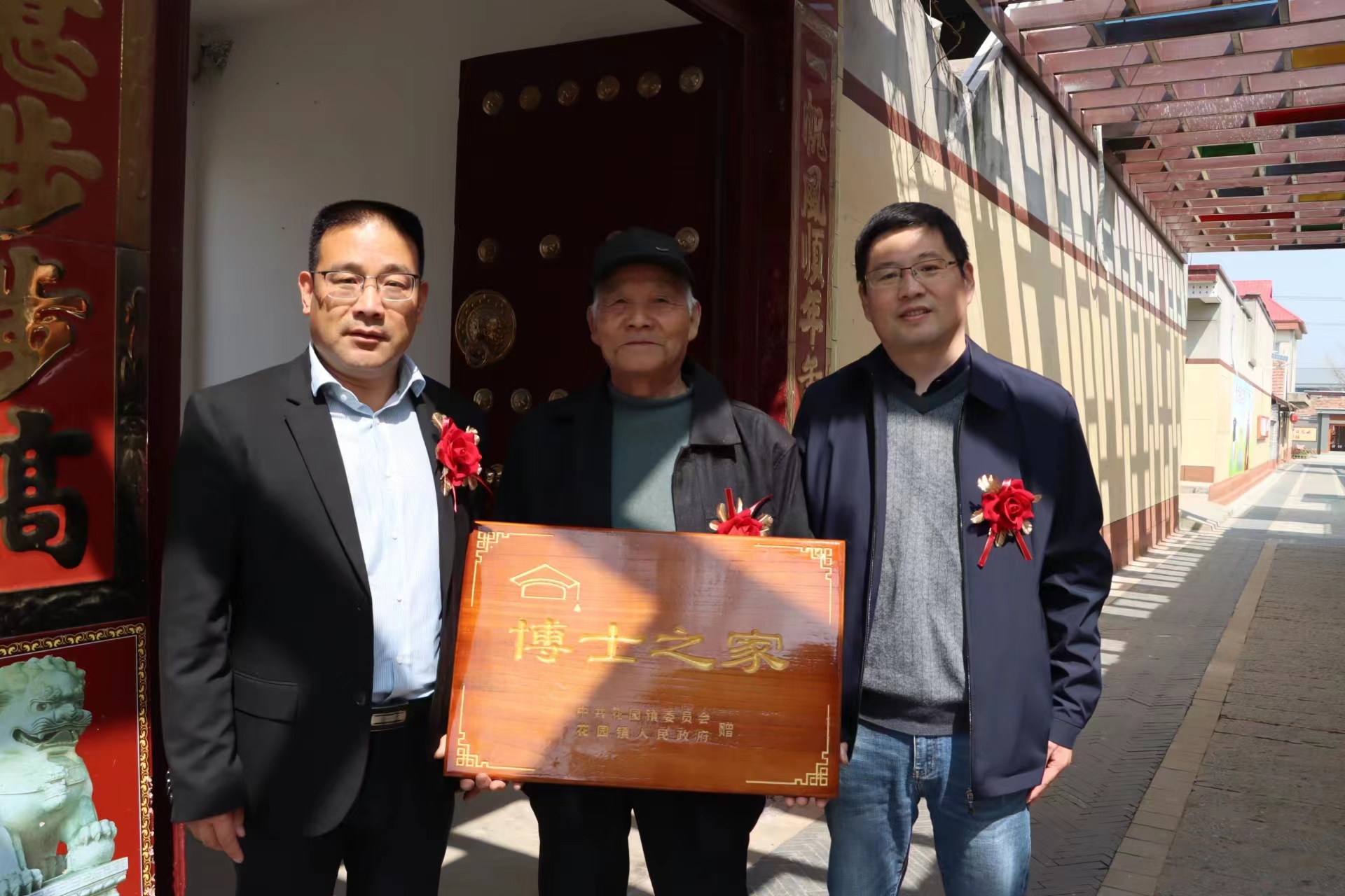 薛力(右)在村中博士巷