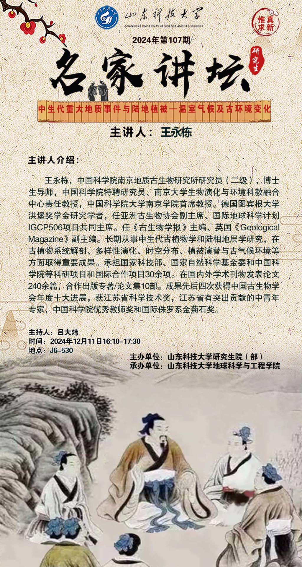 “名家讲坛”2024年第107期:中生代重大地质事件与陆地植被—温室气候及古环境变化(总1001期)