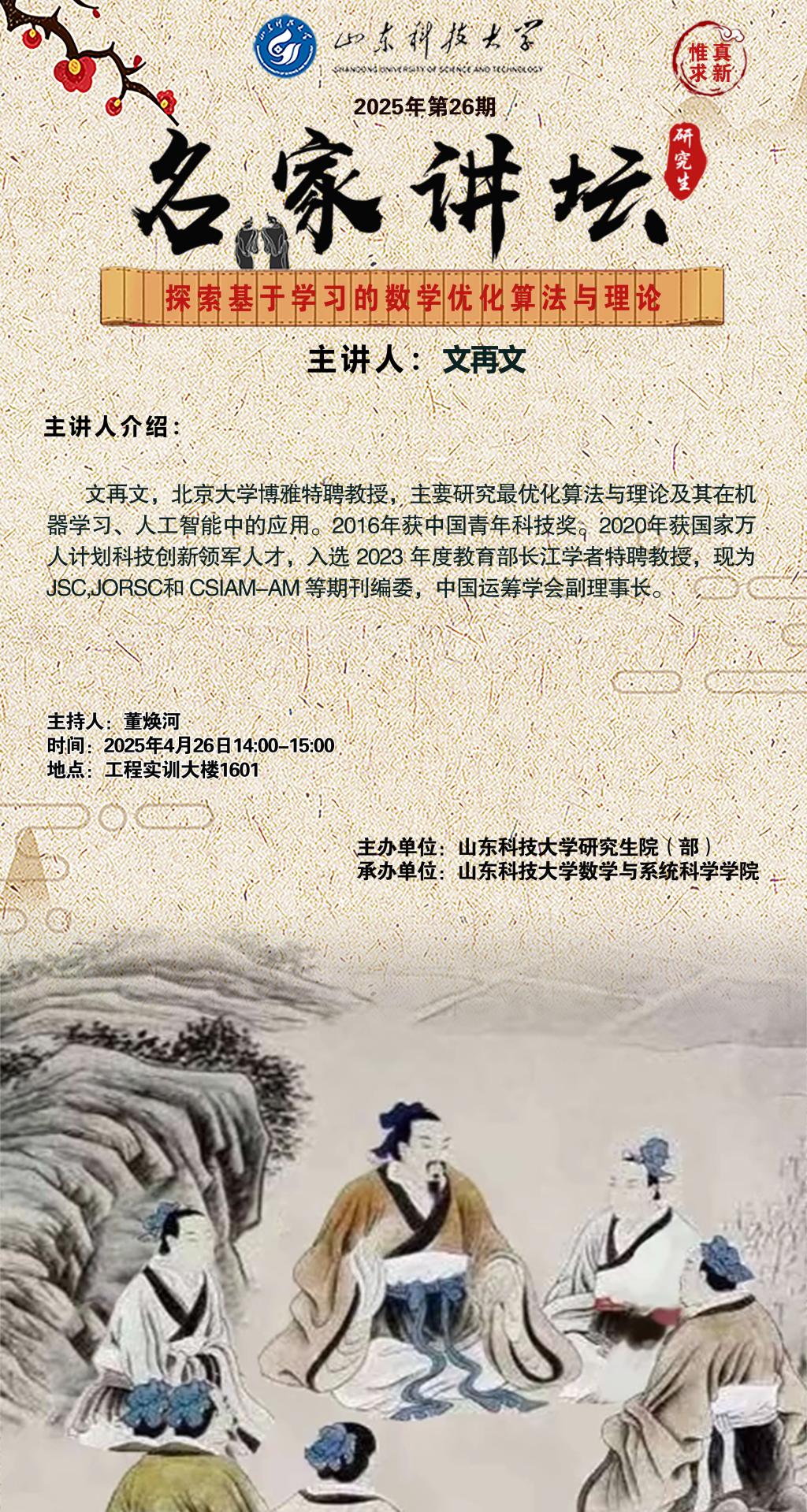 “名家讲坛”2025年第26期:探索基于学习的数学优化算法与理论(总1031期)