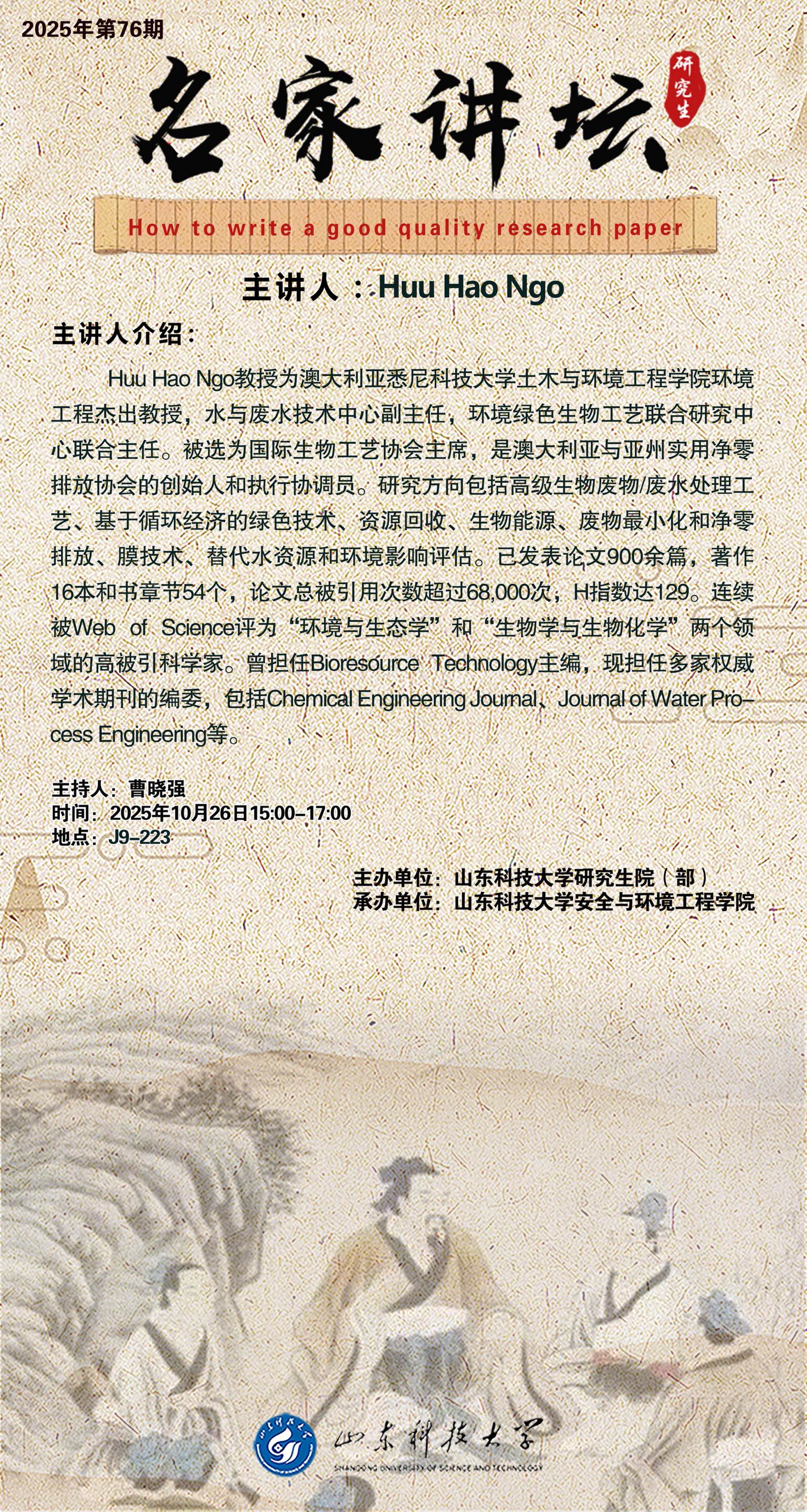 “名家讲坛”2025年第76期:How to write a good quality research paper(总1081期)